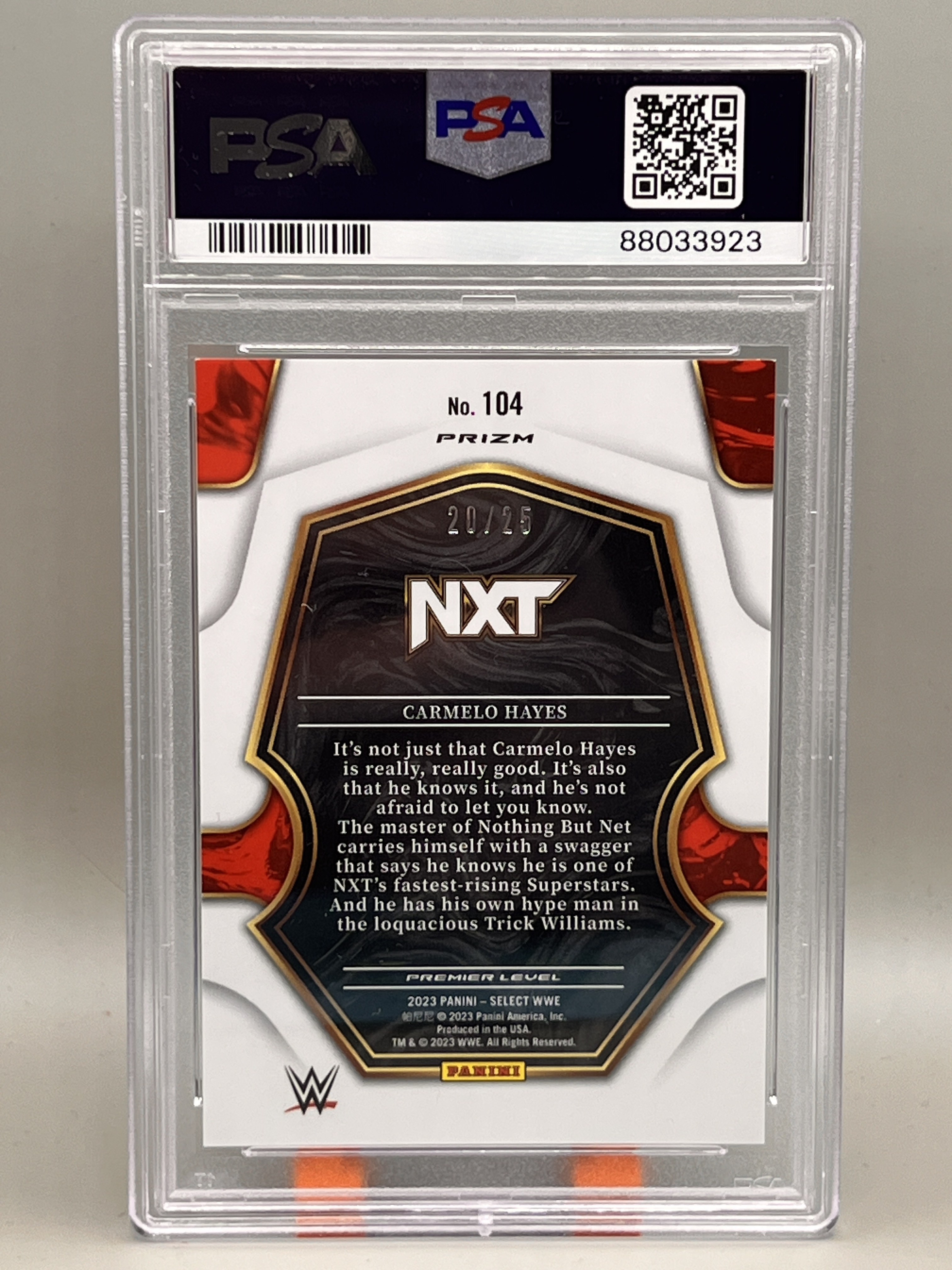 Carmelo Hayes Premier Level Tie-Dye 20/25 PSA-9 - 2023 Panini Select WWE