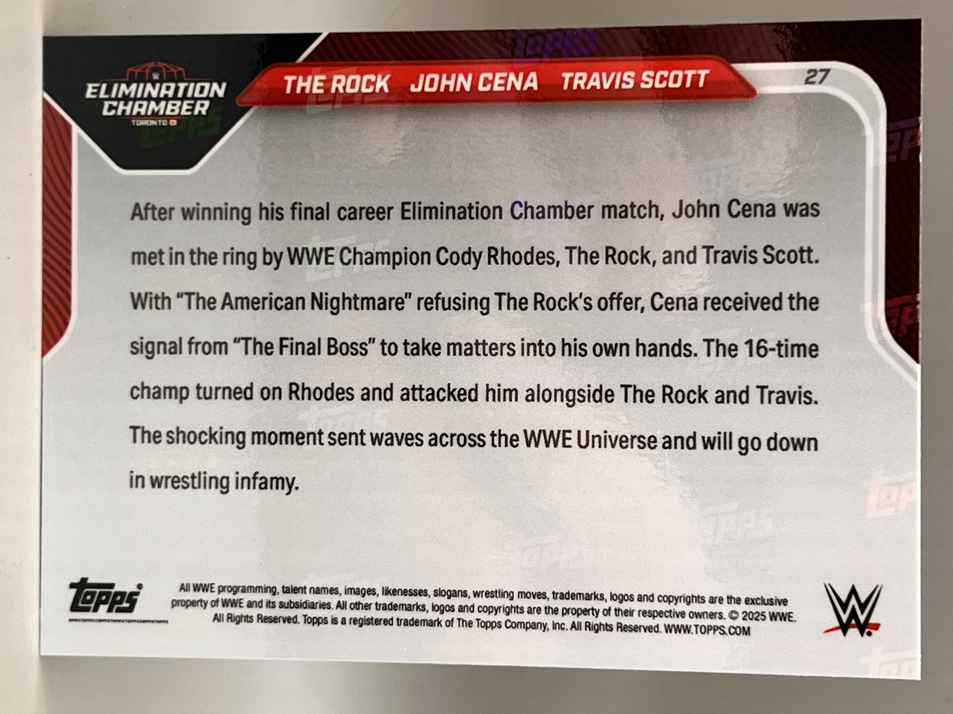 John Cena, The Rock, Travis Scott - Heel Turn - 2025 Topps Now WWE